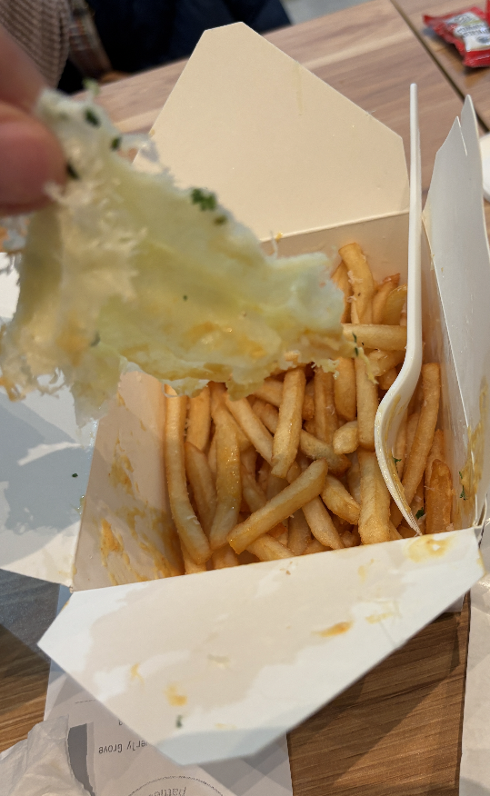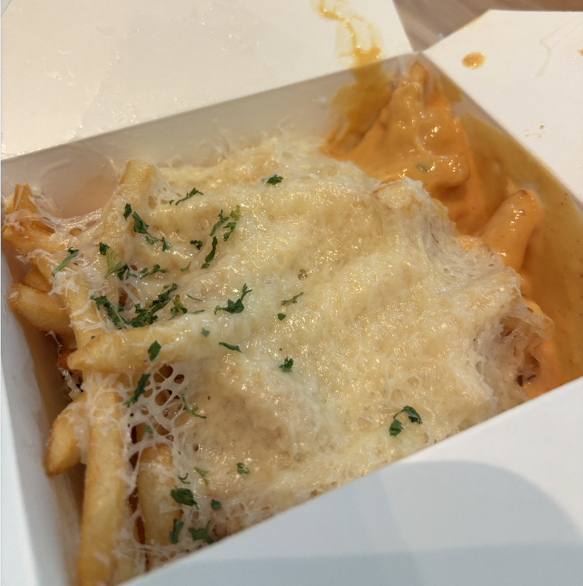 The fries tasted like McDonald’s fries but without the chemical aftertaste. I suspect this aftertaste is the use of the old oil at McDonald’s. Despite having a really great fry, the PnP fries could have used significantly more sauce and the parmasean cheese congealed into a loose “blanket” sitting on top fo the fries. It’s still good but could have been better. I’d still order it again given the opportunity.